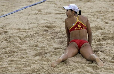 Tian Jia of China shouts after losing a point during their women's beach volleyball final match against the U.S. at the Beijing 2008 Olympic Games, August 21, 2008. Do you want more beach volleyball photos?